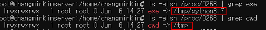 3. 실행중인 악성 프로세스 pid로 실행파일 및 현재 디렉토리 확인