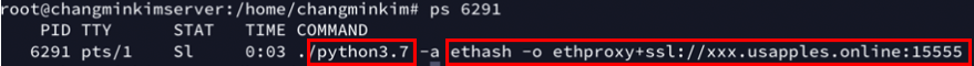 원래는 9268를 입력해야 되는 데, 캡쳐를 못해서 다른거 찍어서 올렸습니다. ps 명령어로 출력한 프로세스 내용의 위와 같습니다. 확인 결과 해당 프로그램에 실행 인수 -a 에는 ethash 그리고 -o에는 ethproxy+ssl://xxx....... 입력되어 실행 되고 있습니다. ethash를 인터넷에 확인해 본 결과 이더리움의 작업 증명 알고리즘 이라고 나와 있네요. 저는 이때 부터 이거 설마 채굴 해킹 당한건가 느끼고 인터넷에서 계속 찾아 보니깐 실제로 저 말고도 GPU가 달린 컴퓨터에서 악성 채굴 웜이 발견된다고 나와 있네요.(저 당시에 저는 멘붕 왔답니다....)