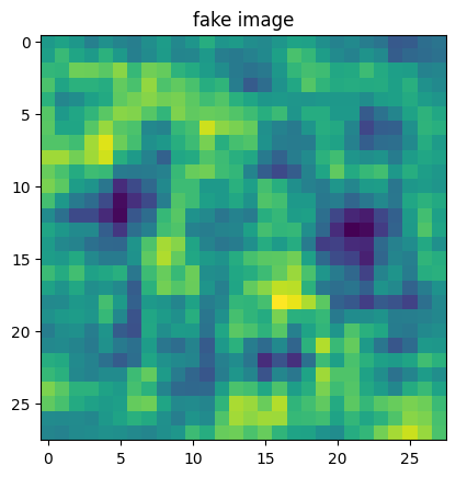 plt.title("fake image distribution")