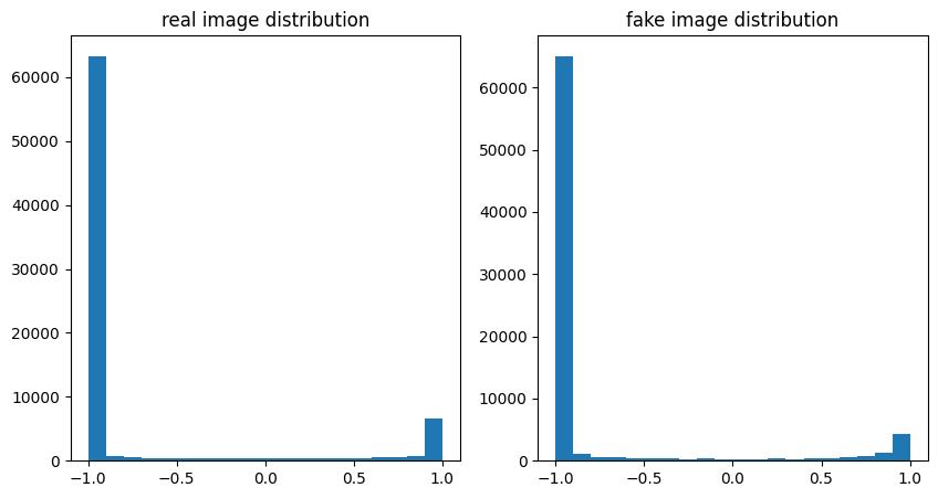 진짜 이미지 분포 와 학습 전 generator 분포 비교