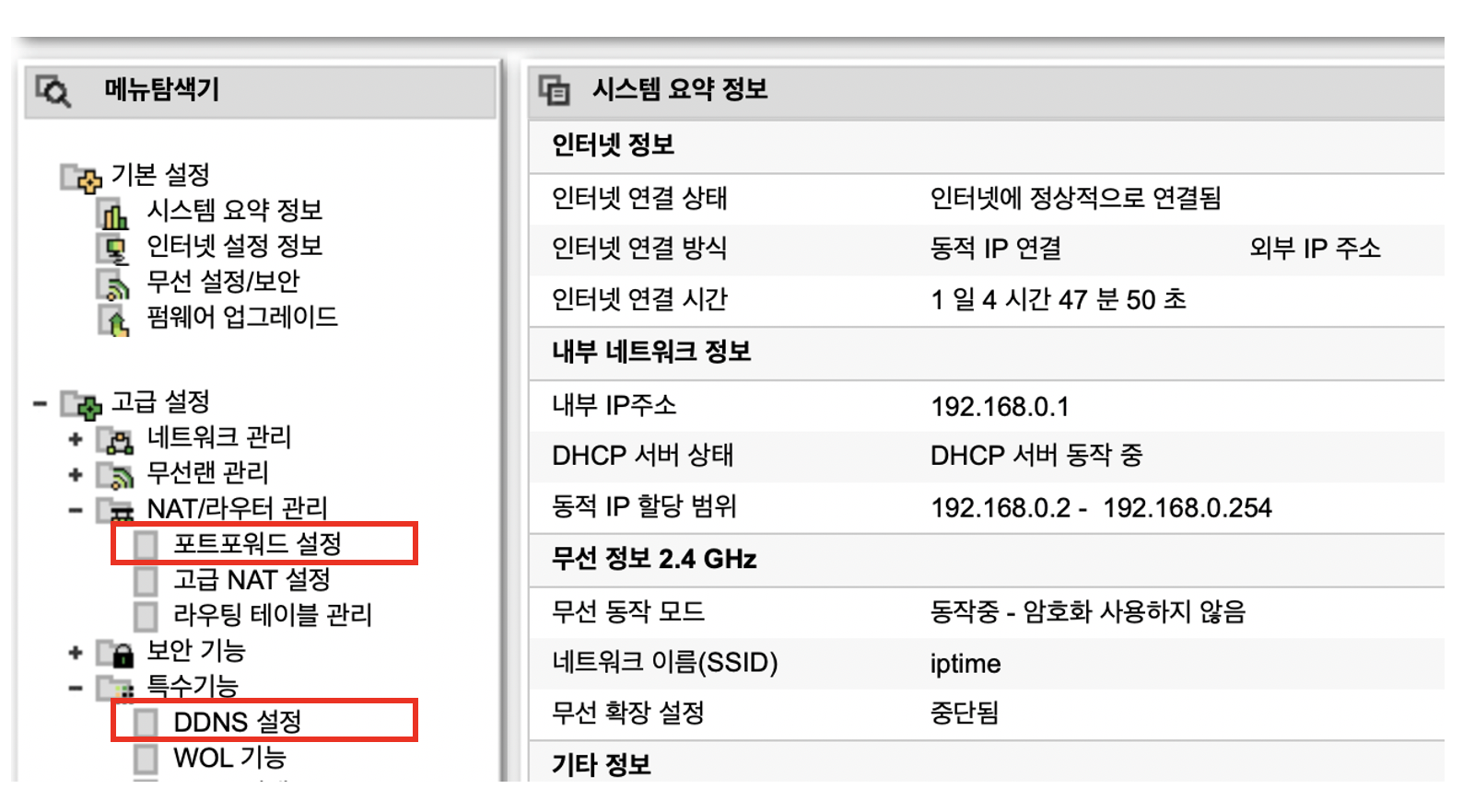 그러면 포트포워딩과 DDNS 설정은 완료 됐습니다.