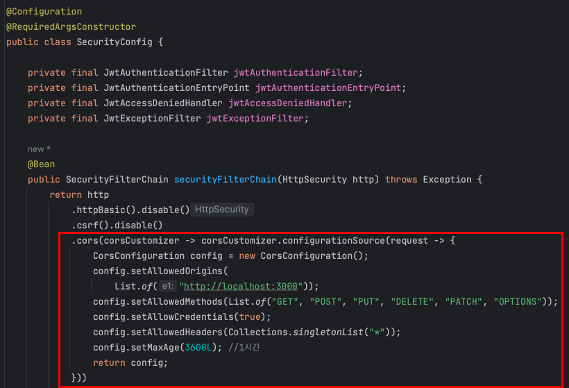 Spring SecurityConfig 컴포넌트에 CORS 설정
